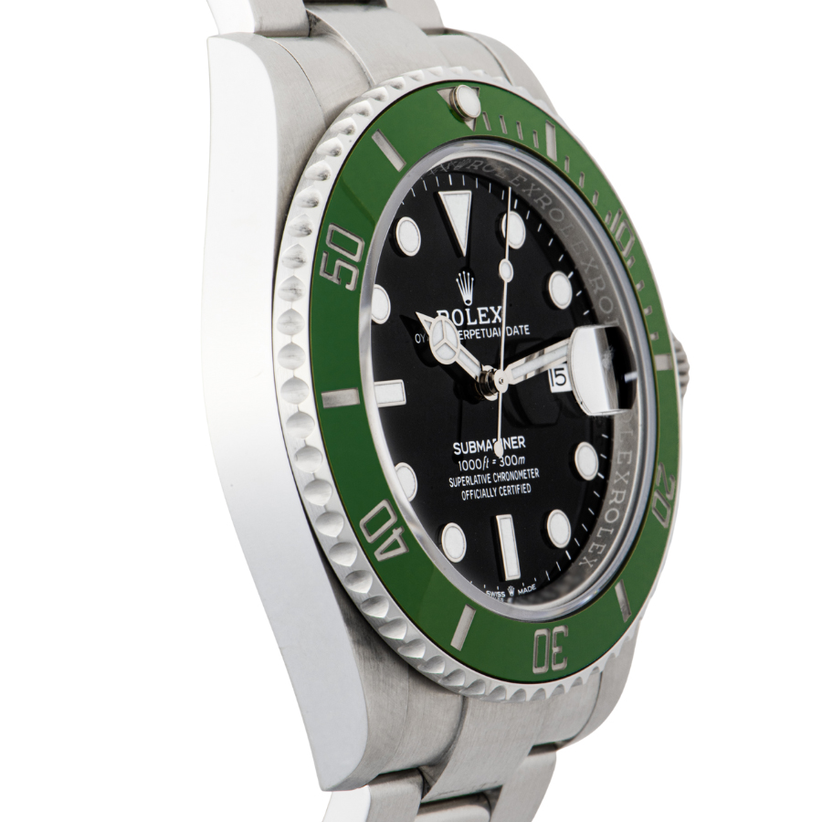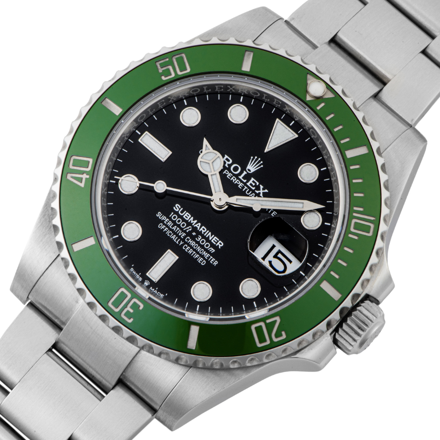 | 商品説明 | ☆116610LVがグリーン文字盤からブラック文字盤への変更。 文字盤にある、ドットのインデックスには青白い発光をするクロマライト夜光塗料を採用することにより視認性がアップされています。 |