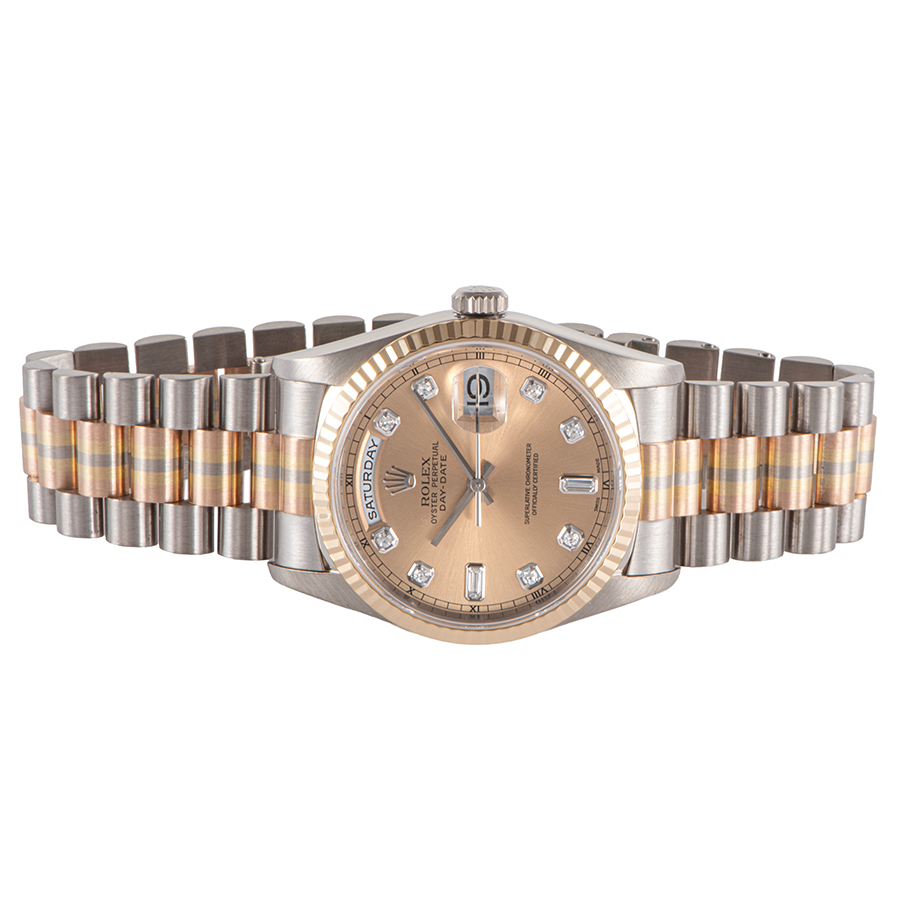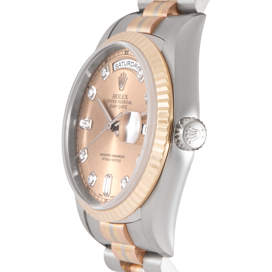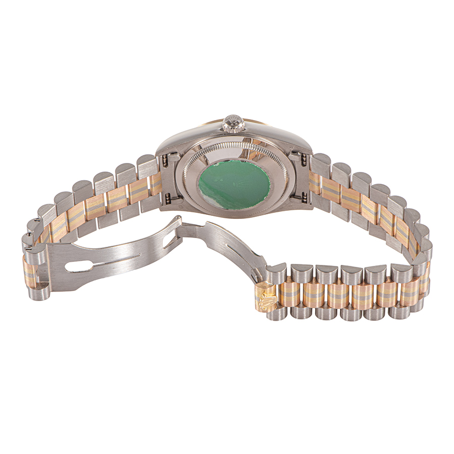 | 商品説明 | ☆現在は生産されていないイエロー、ピンク、ホワイトの3色のゴールドを使用したトリドールブレスレットを備えたデイデイトが入荷しました。 文字盤に8Pダイヤと2Pバケットダイヤをあしらった豪華なモデルです。 表示価格は現金価格となります。 通常ローンはご利用いただけます。 |