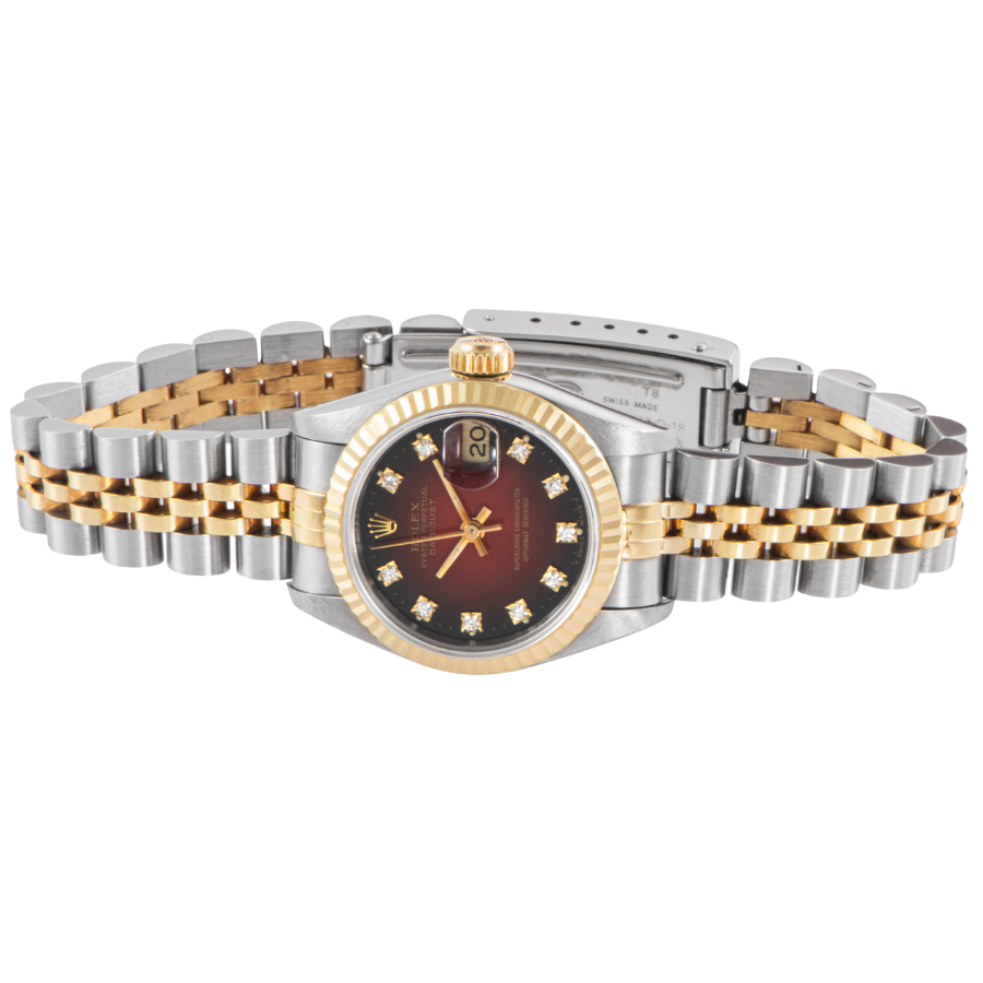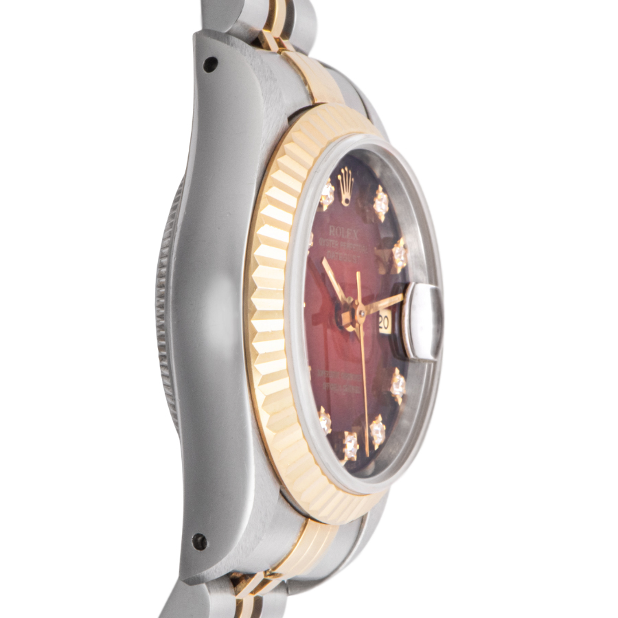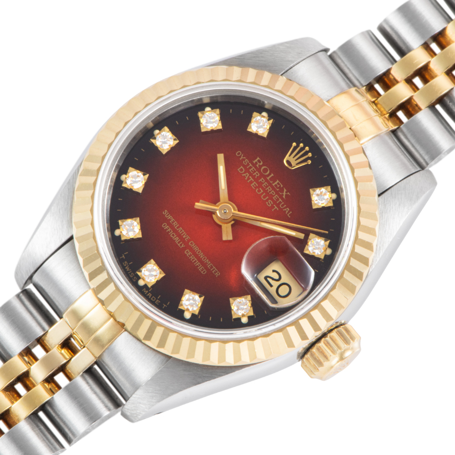 | 商品説明 | ☆華やかで上品なチェリーグラデーション文字盤を備えた、レディースサイズのデイトジャスト。 外周に向かって深みを増すレッドの色彩が美しく、10ポイントダイヤモンドのインデックスがアクセントに。 流通の少ない希少なモデルです。 表示価格は現金価格となります。 通常ローンはご利用いただけます。 |
