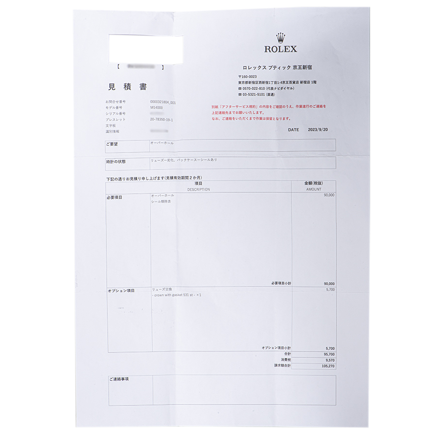 | 付属品 | 修理見積書 |