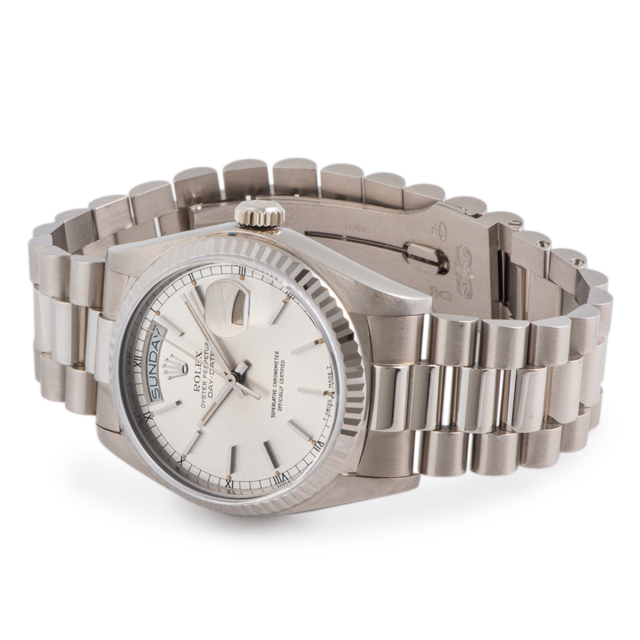 | 商品説明 | ☆ロレックスのラインナップの中で最上級に位置するのがデイデイトです。 素材はゴールドもしくはプラチナ素材のみというラインナップで、ロレックスで唯一フルカレンダー表示を搭載するモデルとなります。 シンプルで使いやすく定番のカラーとなるシルバーダイアルになります。 ※仕上げで消せる程度の使用に伴う小傷がケースサイド、ブレス部分に御座います。 目立つ大きな傷や致命的なダメージなどなく概ね綺麗な状態です。 表示価格は現金価格となります。 通常ローンはご利用いただけます。 |