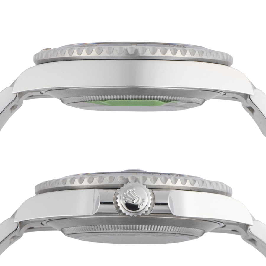 | 商品説明 | ☆☆前モデル116610LNに比べ、ケースサイズが1mmサイズアップし、2020年に誕生したサブマリーナ「Ref.126610LN」。 ケースサイズが大きくなったことに伴い、ラグ形状やブレスレット幅、1コマ1コマの大きさも変更され、全体的なバランスが調整されているようです。 |
