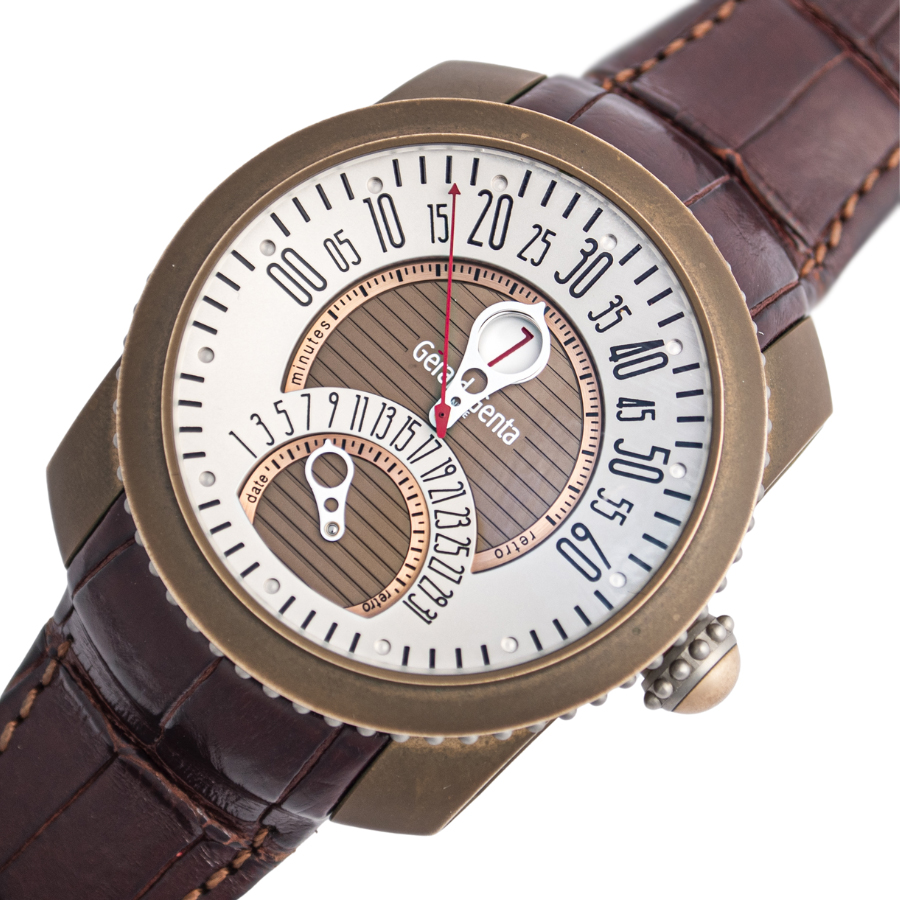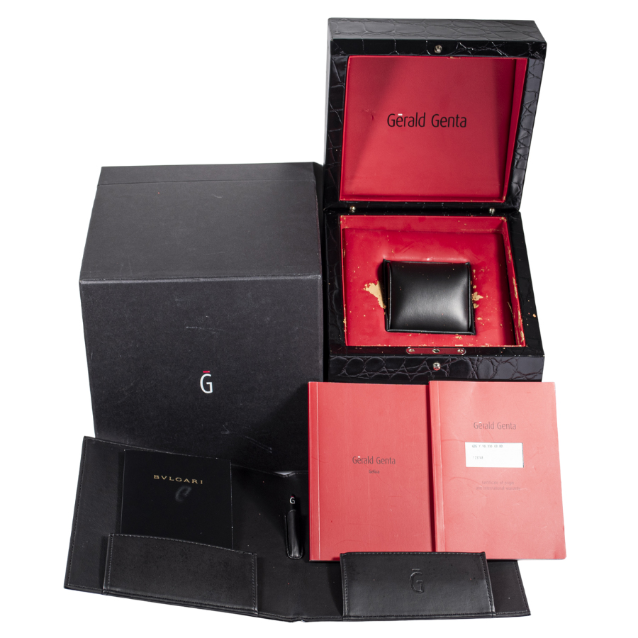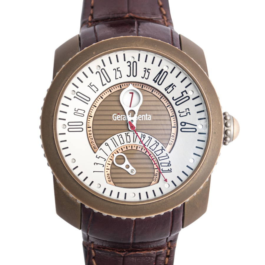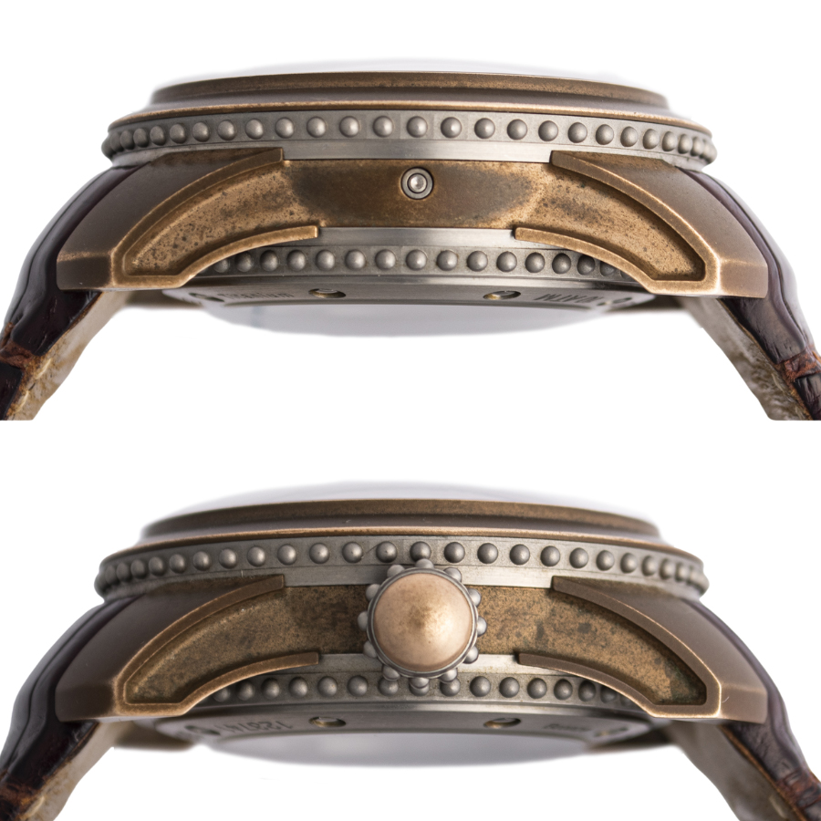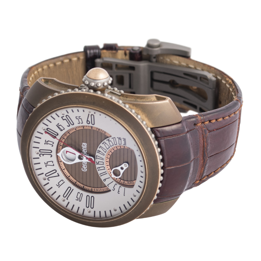 | 商品説明 | ☆時間表示はジャンピングアワー、分針とカレンダーはレトログラード機構による時間表示がジェラルド・ジェンタの作品らしさを出ています。 ケースはブロンズ製で風合いも楽しめるモデルです。 ※ケース本体全体に、ブロンズ特有の変色があります。 打ち傷や凹みなどの使用に伴うダメージはなく、概ね綺麗な状態です。 純正革ベルトに使用感があり、裏面にベルトのひび割れ黒ずみが御座います。 表示価格は現金価格となります。 通常ローンはご利用いただけます。 |