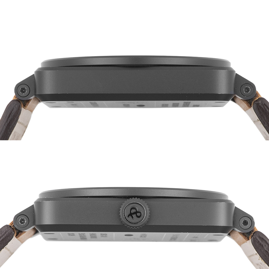 | 商品説明 | ☆飛行機のコックピットに装備された計器をモチーフとした人気モデルです。 黒茶文字盤とベージュのインデックスと針の夜光色がヴィンテージ感を出しています。 ※目立つ大きな傷や致命的なダメージはなく、PVDコーティングの一部(11時位置ラグ部分)に僅かに剥がれがありますが、概ね綺麗な状態です。 純正革ベルトも使用感が少なく綺麗な状態です。 表示価格は現金価格となります。 通常ローンはご利用いただけます。 |
