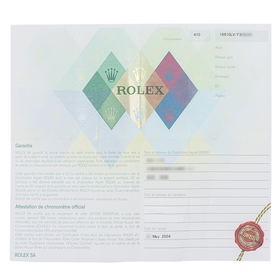 ロレックス サブマリーナデイト 16610LV F番 ファット4