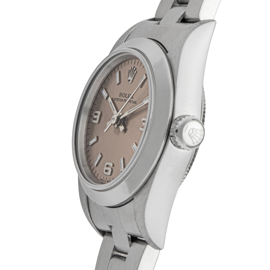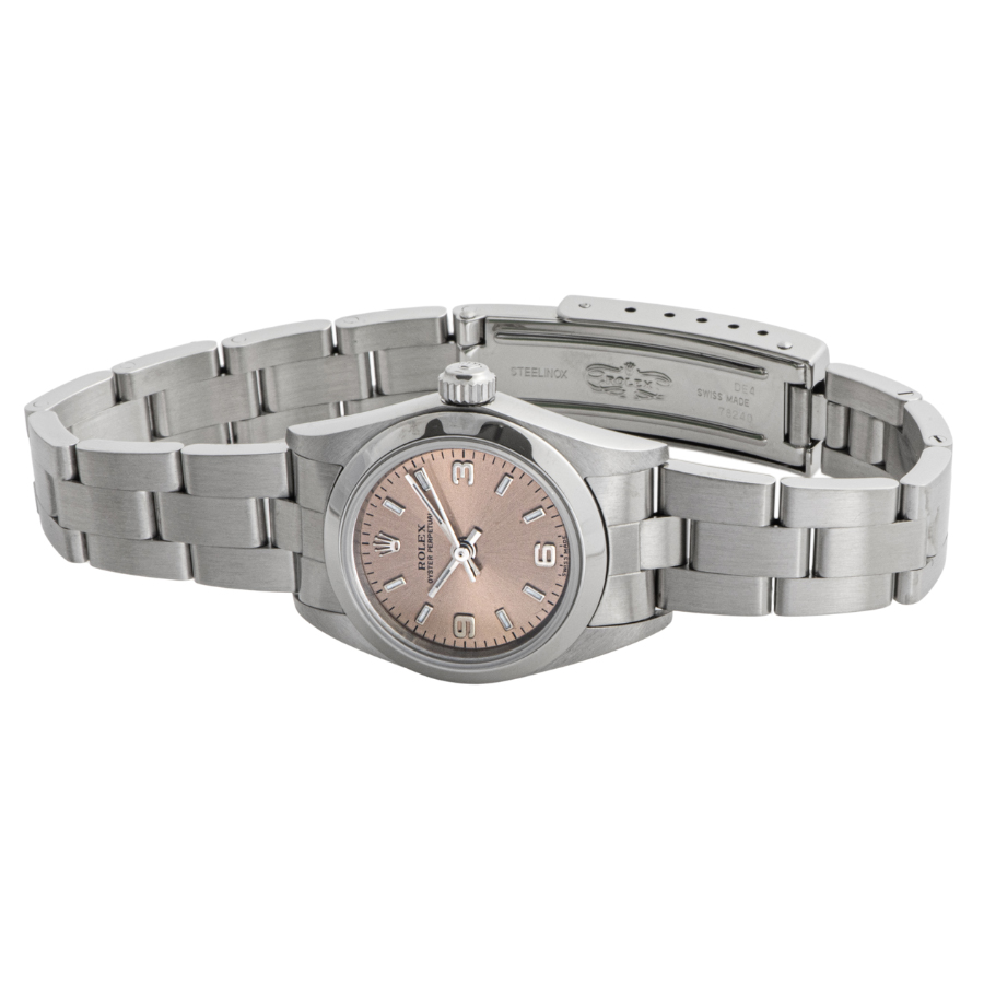 | 商品説明 | ☆レディースモデルで人気の高いオイスターパーペチュアルの3.6.9インデックスのピンクダイアルです。シンプルなデザインで普段使いにぴったりなモデルです。 |