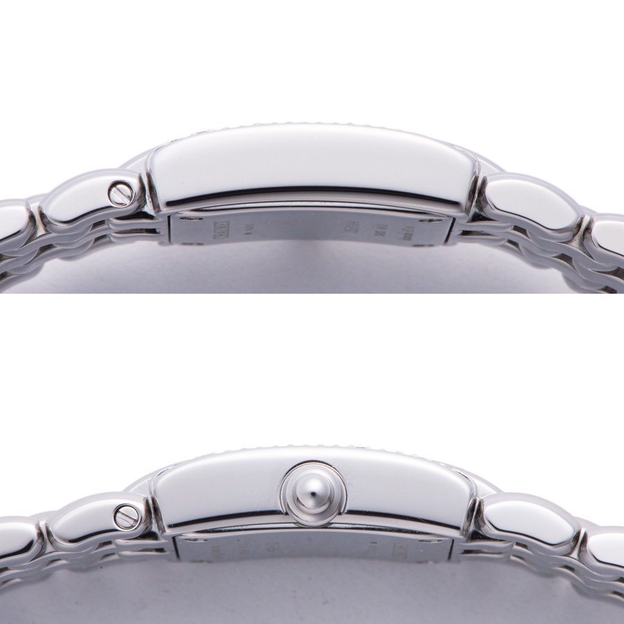 | 商品説明 | ☆ブレスレットとケースのサイドラインが、直線で構成されたコレクション「ケイシス」です。 ケース正面に左右と文字盤にダイヤモンドがセッティンされ、ポリッシュ仕上げされた5連の粒状メッシュブレスの光沢が美しいモデルです。 ※ケースサイドに薄い線傷がありますが目立つ程ではございません。 その他には目立つ大きな傷等無く綺麗な状態です。 表示価格は現金価格となります。 通常ローンはご利用いただけます。 |