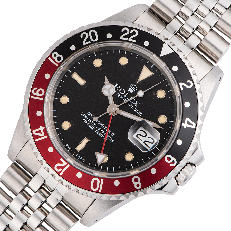 | 商品説明 | ☆生産期間がわずか5年と短い“GMTマスターII”のファーストモデルです。 ケースの厚みが従来のものより厚くなっている通称「ファットレディ」と呼ばれ、入荷がとても難しくコレクターズアイテムとしてお勧めです。 ※ケース本体やブレス、ベゼルに特筆すべきダメージはなく大変綺麗な状態です。 ダイアルに経年劣化によるブツブツがインデックス周りや文字盤全体に少々でております。 時針、分針、GMT針は交換されており、ルミノバ夜行になります。 表示価格は現金価格となります。 通常ローンはご利用いただけます。 |