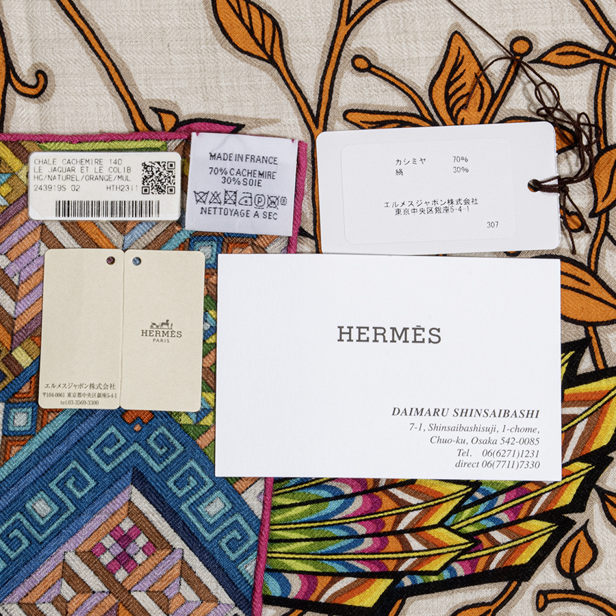 エルメス カレジェアン Le Jaguar et Le Colibri ジャガーとハチドリ 243919S 02 スカーフ ショール ストール カレ140 カシシル 2023AW