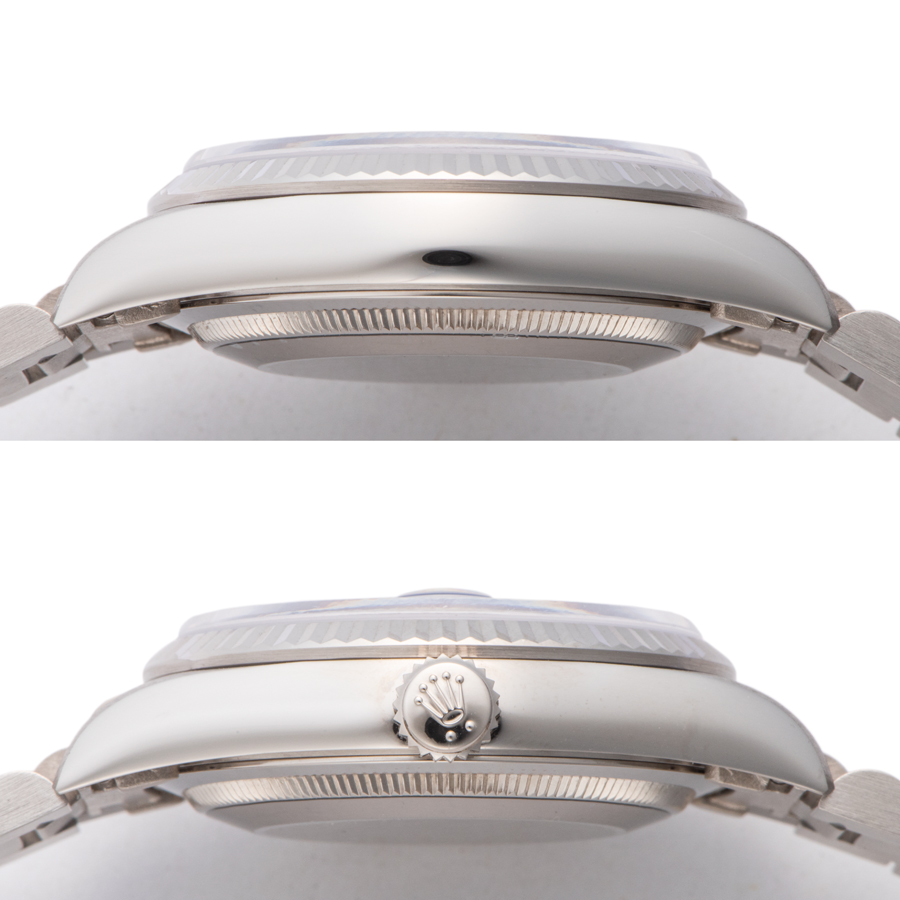 | 商品説明 | ☆こちらは文字盤に「ラピスラズリ」という深みのある瑠璃色の天然石を使用したモデルです。 ホワイトゴールドにラピスラズリの組合せは数が少なく人気が高くオススメです。 ※ベゼル8時位置方向に着用時目立たない程度の小さな打ち傷が見受けられます。(写真参照) その他の箇所には目立つ大きな傷などはなく大変綺麗な状態です。 ケース痩せも少なくコレクションにぴったりな個体です。 2021/7にメーカーでOH済みです。 表示価格は現金価格となります。 通常ローンはご利用いただけます。 |