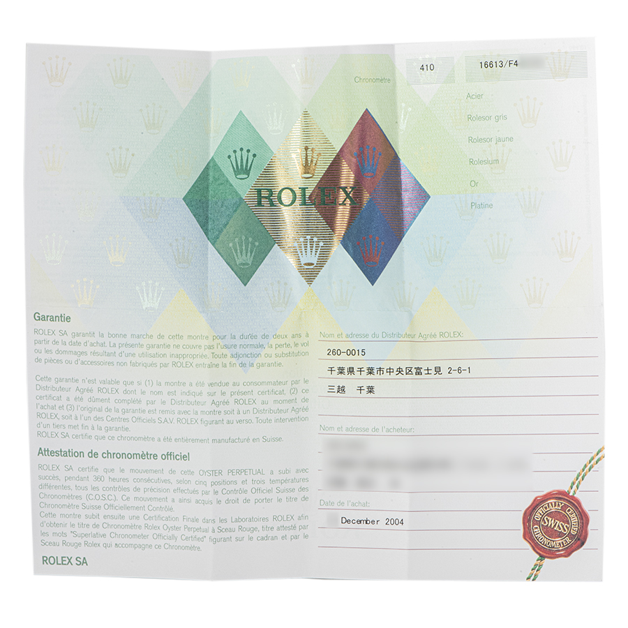 ロレックス サブマリーナデイト 16613 F番