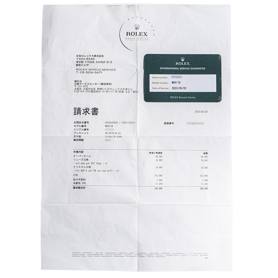 | 付属品 | 修理明細・国際サービス保 |
