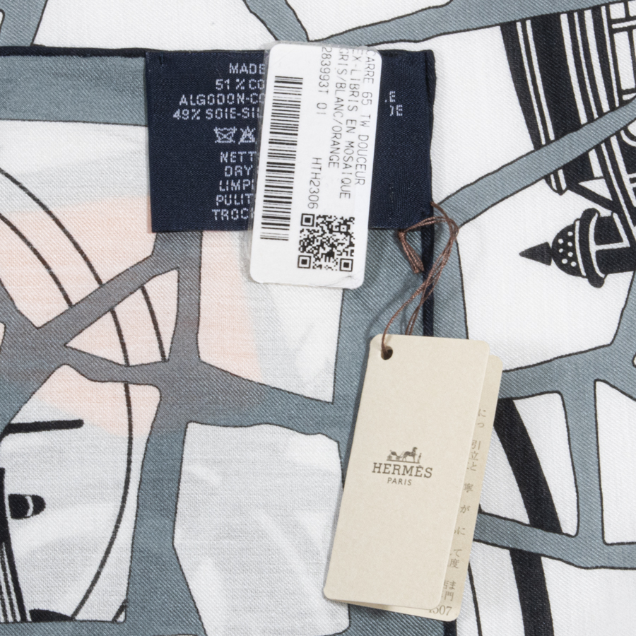 エルメス カレ65 Ex-Libris en Mosaique エクスリブリス アン モザイク 283993T 01 スカーフ 2023SS