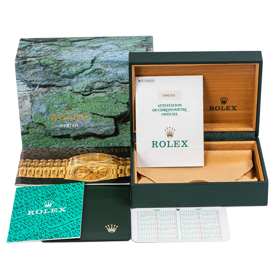 | 商品説明 | ☆生産終了モデルのRef.16610が入荷しました。 夜光は全てトリチウムのままです。 ※ベゼルディスク上に線傷がありダイアル表面に色むらが出ております。 外装仕上げを行っておりますが、ケースサイドに小さな打ち傷や使用傷がポツポツと残り、 裏蓋の面に使用傷や打ち傷が見受けられます。 ダイアルの針の付け根周辺に経年によるプツプツがでており、全体がエイジングにより若干の色ムラがありますが、ヴィンテージの雰囲気をお楽しみいただけます。 その他致命的なダメージは無く概ね綺麗な状態です。 表示価格は現金価格となります。 通常ローンはご利用いただけます。 |