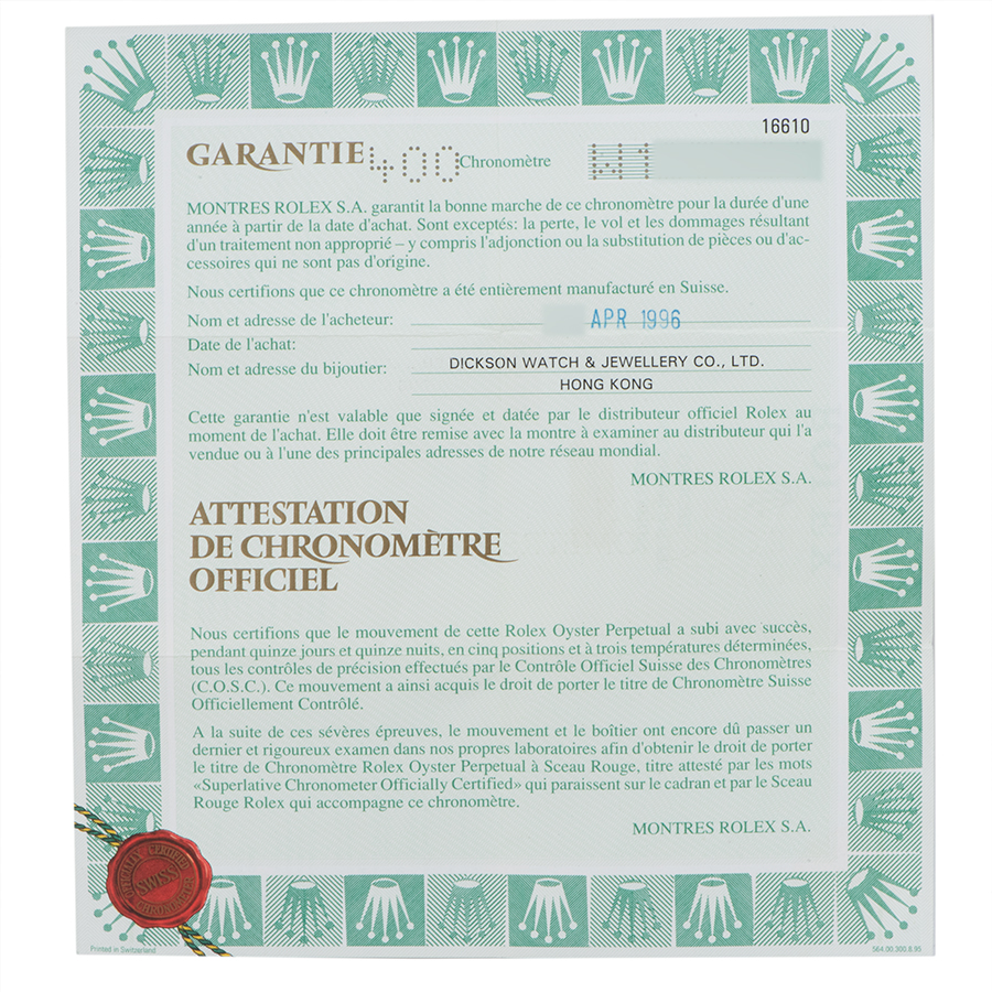 | シリアル | W番(1995年製) |