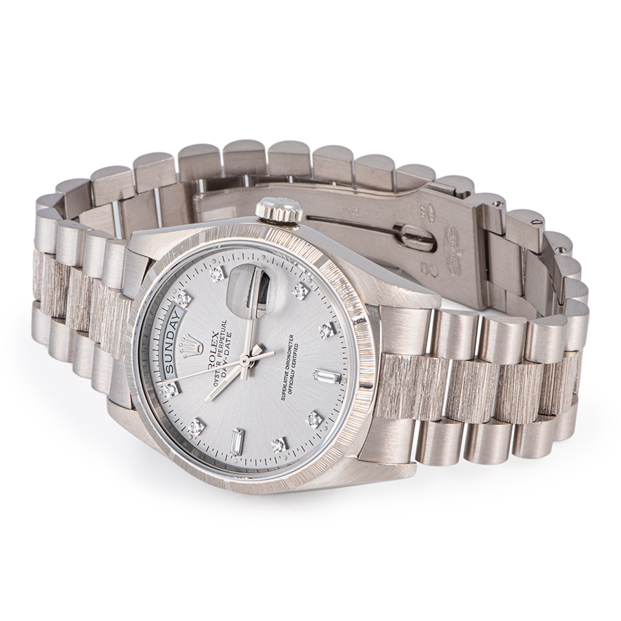 | 商品説明 | ☆ベゼルとブレスレットの中央部にバーク仕上げが施されているのが特徴的でイエローゴールド製と違い、ホワイトゴールド製はほとんどお目にかかることがないとてもレアなモデルです。 ※外装仕上げ済みですが5時位置のラグ角に当て傷が残っております。 ブレスにやや伸びがありますが、目立つ大きな傷や致命的なダメージはなく概ね綺麗な状態です。 表示価格は現金価格となります。 通常ローンはご利用いただけます。 |