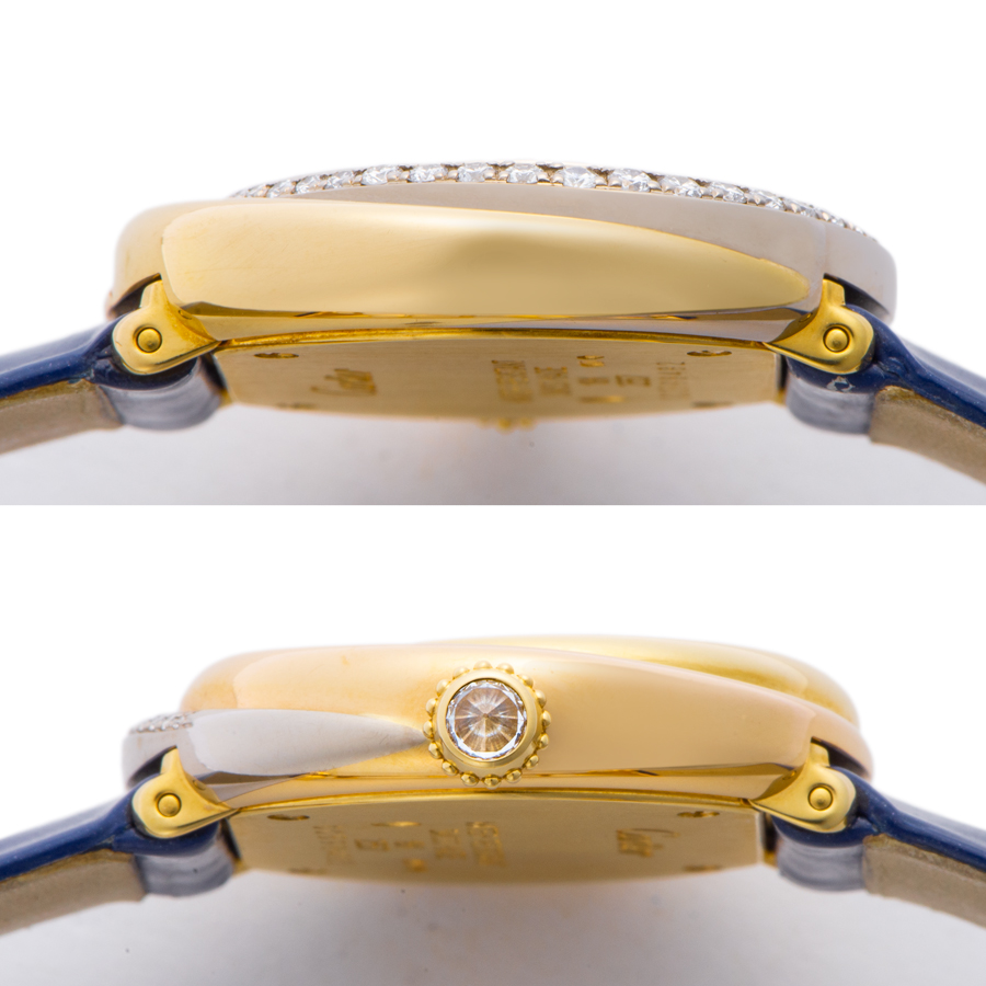 | 商品説明 | ☆3色のゴールドを組み合わせた独特なデザインが人気のモデルです。 ダイヤモンドもセットされ、手元を華やかに演出してくれます。 ※使用に伴う薄い小傷はありますが、目立つ傷等はなく綺麗な状態です。 ベルトも使用感が少なくきれいな状態です。 表示価格は現金価格となります。 通常ローンはご利用いただけます。 |