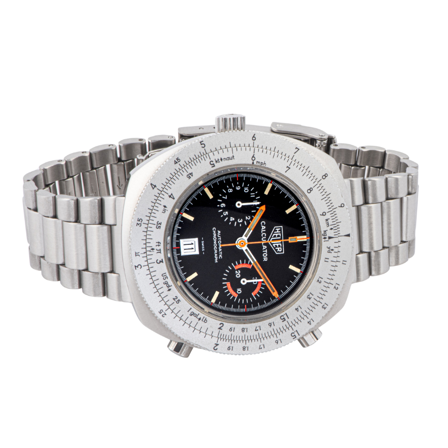 | 商品説明 | ☆1970年代に生産されていたモデルで、回転計算尺が付いたバレル型ケースは45mmあり存在感があります。搭載ムーブメントは自動巻クロノCal.12を採用しています。 ブレスレットも当時のオリジナルのままで、ダイヤルのコンディションも良く、一目でヴィンテージウォッチと分かる個体です。 表示価格は現金価格となります。 通常ローンはご利用いただけます。 |