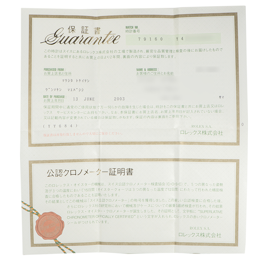 ロレックス オイスターパーペチュアル 79160 Y番
