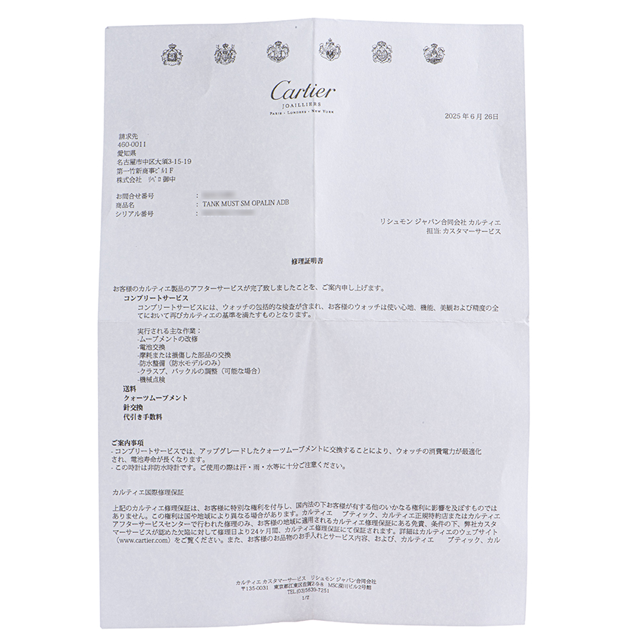 | 付属品 | 修理明細書(2025/6) |