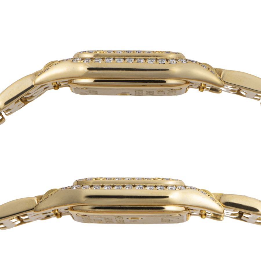 | 商品説明 | ☆リューズの無いすっきりとしたデザインの「ミニパンテール」が入荷致しました。 高級感のあるイエローゴールド素材を使用し、ベゼル部分に2重にダイヤをセッティング、さらにラグ周辺のコマにもダイヤモンドがある大変豪華なモデルです。 表示価格は現金価格となります。 通常ローンはご利用いただけます。 |