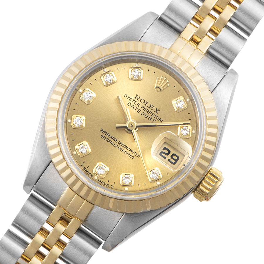 | 商品説明 | ☆イエローゴールドとステンレスのコンビモデルから根強い人気のシャンパン文字盤、10ポイントダイヤインデックスのモデルです。 レディースモデルの代名詞的な存在で、年齢を問わずお使いいただけます。 ※95年に製造されているのでブレスにやや伸びがあり、過去に何度か仕上げされているようで若干の痩せはありますが、目立つ大きな傷はなく全体に大変綺麗な状態です。 表示価格は現金価格となります。 通常ローンはご利用いただけます。 |