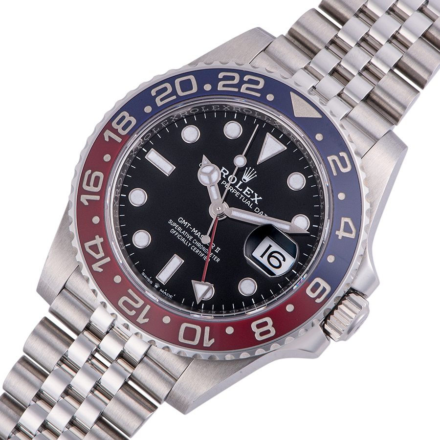 | 商品説明 | ☆GMTマスターIIの2018年新作モデルです。スチール製モデルにレッドとブルーの 2 色のセラミック製ベゼルを備え、ブレスレットにはジュビリーブレスレットが採用されています。 また今回はMK2ベゼルと言われる、現行モデルのベゼルに比べ赤青ともに薄い色目となっている珍しい個体になります。 ※ケースサイド10位置にに僅かな打ち傷がありますが、着用に目立つほどではありません。その他、大きな傷はなく大変綺麗な状態です。 表示価格は現金価格となります。 通常ローンはご利用いただけます。 |