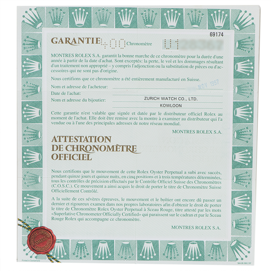 ロレックス 69174 U番
