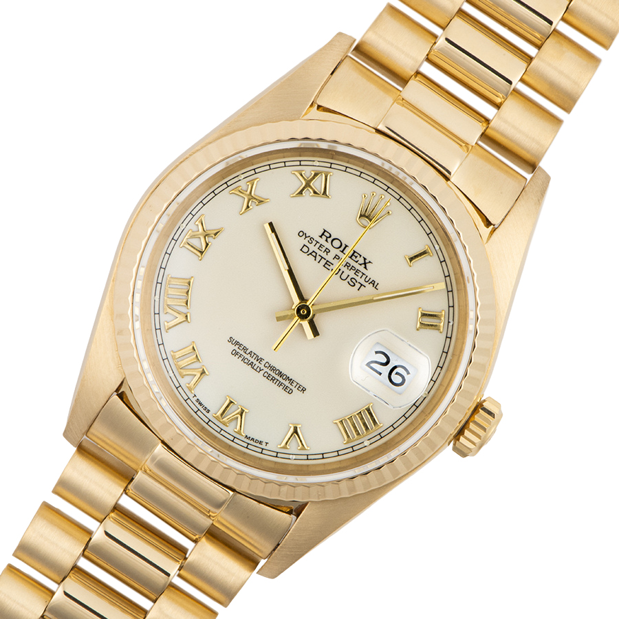 | 商品説明 | ☆アイボリーローマンダイアルの金無垢デイトジャストが入荷しました。 ※外装仕上げ済みで目立つ大きな傷などなく大変綺麗な状態です。 ブレスに若干の伸びがありますが、年代を考慮して頂ければコンディション大きな問題はございません。 表示価格は現金価格となります。 通常ローンはご利用いただけます。 |