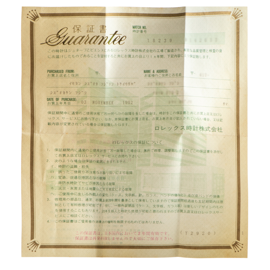 | コンディション | ガラス:角を爪でなぞるとわずかに引っかかる程度のガラスかけがあります 文字盤・針:大変綺麗な状態 ベゼル:目立つ傷などなく大変綺麗な状態 ケース:ケースサイドに僅かに小傷が残りますが、目立つ傷などなく大変綺麗な状態 ブレスレット:目立つ傷などなく大変綺麗な状態 ※弊社で研磨仕上げ済み |