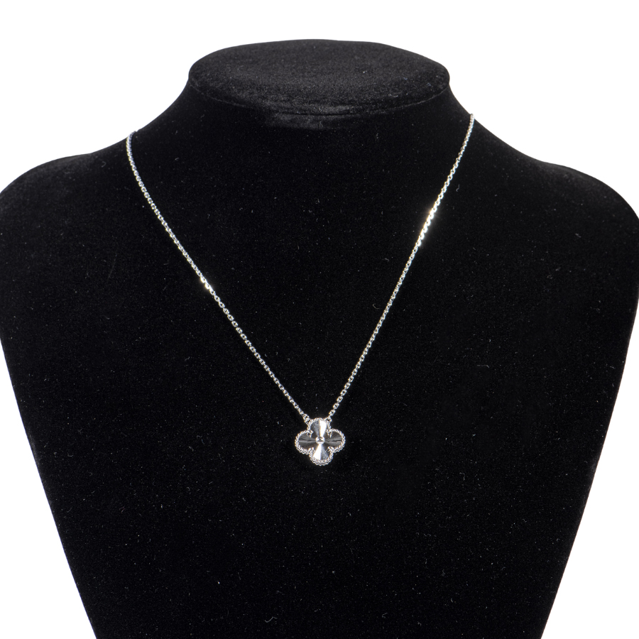 | 商品説明 | ☆1968年に初めて誕生したアルハンブラの特徴を受け継ぎ、ヴァン クリーフ&アーペルならではの独創性と時を超えるエレガンスを湛えるヴィンテージ アルハンブラ。 ギヨシェ ロジウムコーティングが施されたクローバーをホワイトゴールドビーズが縁取り、美しく胸元で輝きます。 ※目立つ傷等無く綺麗な状態です。 表示価格は現金価格となります。 通常ローンはご利用いただけます。 |
