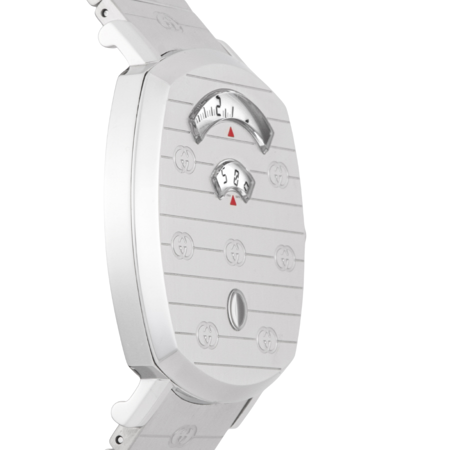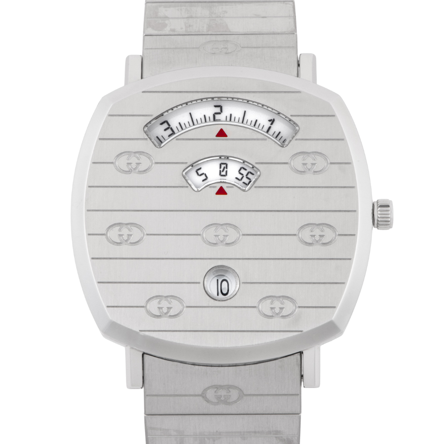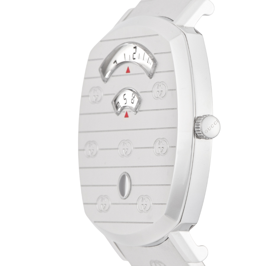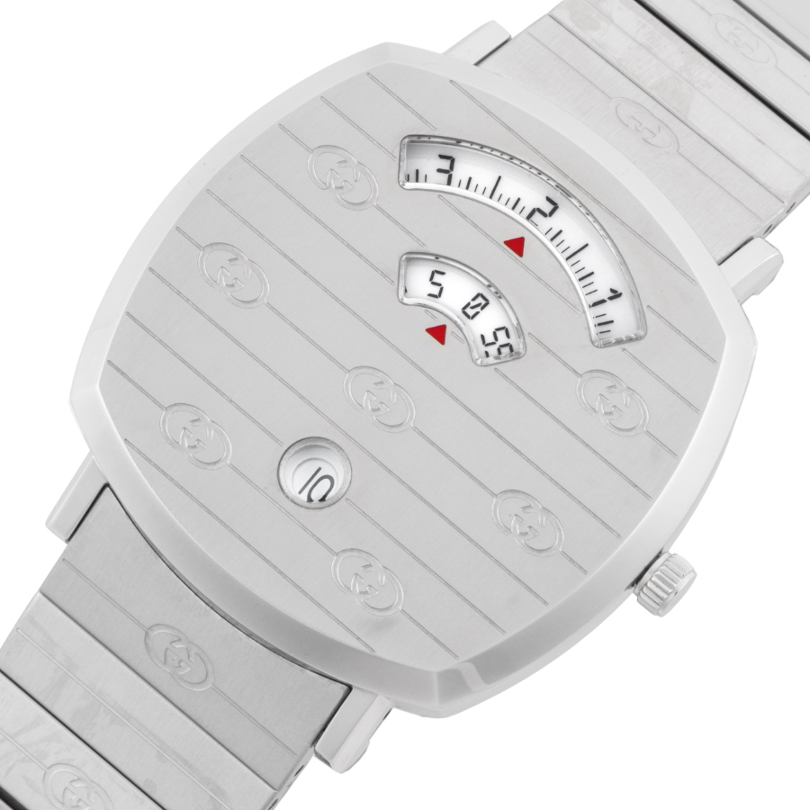 | 商品説明 | ☆スケートボードのグリップテープから着想を得た、個性的でモダンなデザインが魅力の「グリップ ウォッチ」。 ケースに開けられた3つの小窓に、時・分・日付を表示する独自のジャンピングディスク機構を搭載。 視認性と遊び心を兼ね備えた、GUCCIならではのスタイリッシュなタイムピースです。 表示価格は現金価格となります。 通常ローンはご利用いただけます。 |